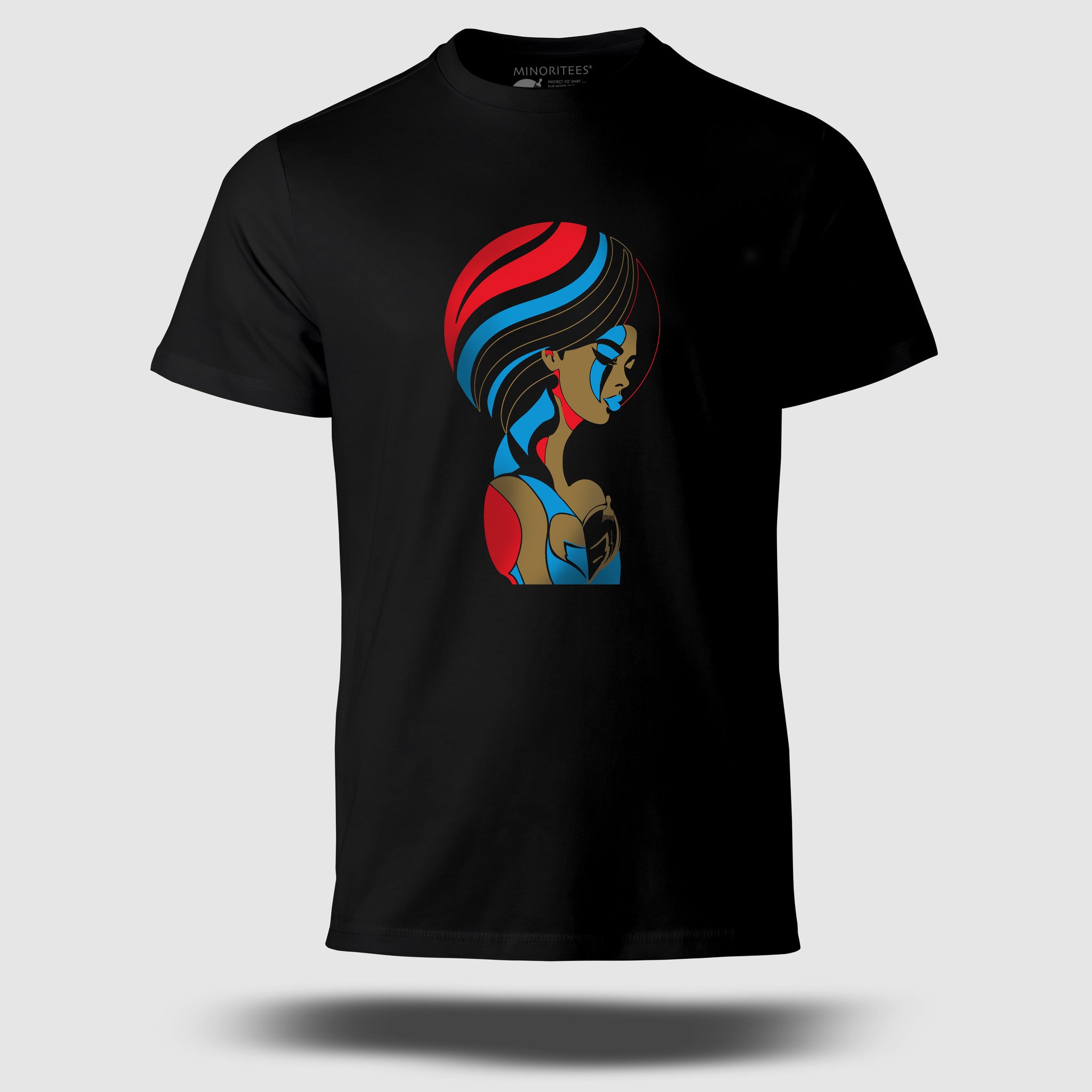 4.3oz., 100% combed ringspun cotton. Machine Wash Warm. Dry Medium or lay flat to dry. Do not bleach. No Iron necessary.
